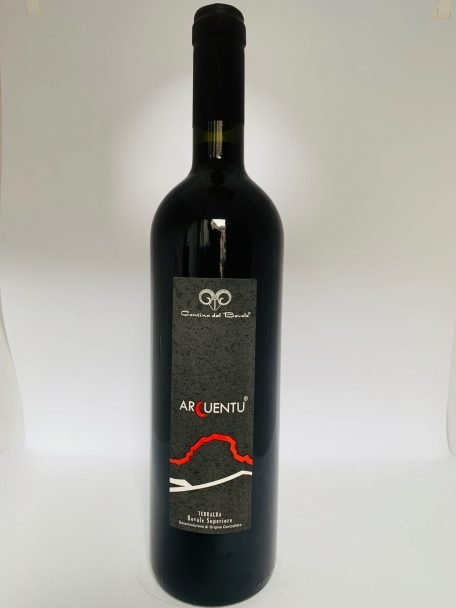 Etiketten viser Arcuentu som er et bjerg, man kan se fra vinmarken. Vinmarken er omkranset af kaktusser. Lidt anderledes.